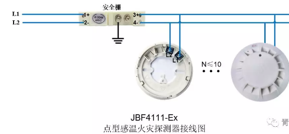 需配接安全柵,一只防爆安全柵后限帶≤10 只防爆感溫探測器。